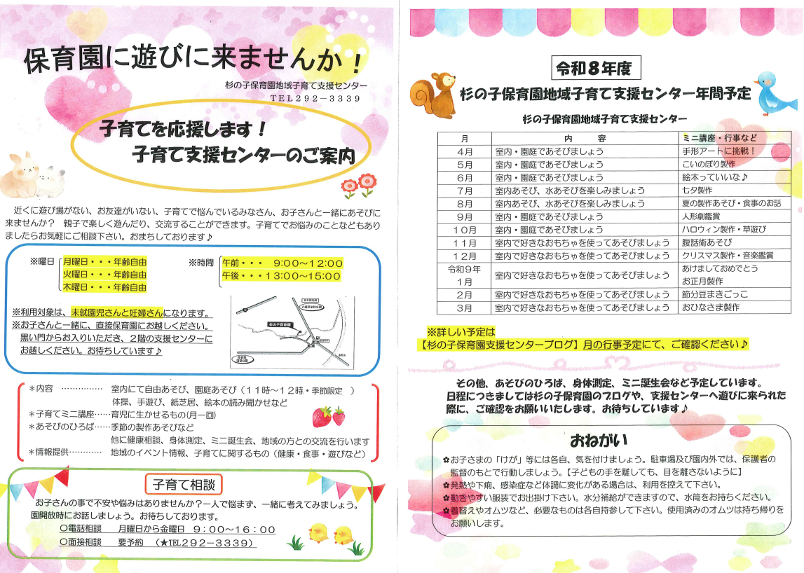 杉の子第3保育園」の各園は相談に応じて行います。)